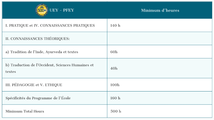 L’enseignement de l’école de formation Arc et Flèches suit le programme développé par l’Union Européenne de Yoga, l’UEY qui est affiché sur son site.